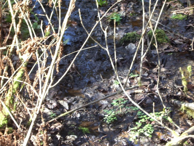 These photos were all taken about 50 yards west of the bridge over the creek, marked with the Green B icon on the map.