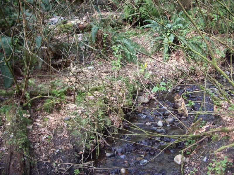 A few weeks later you can see skunk cabbage growing on both sides of the creek, on the banks well above water level.