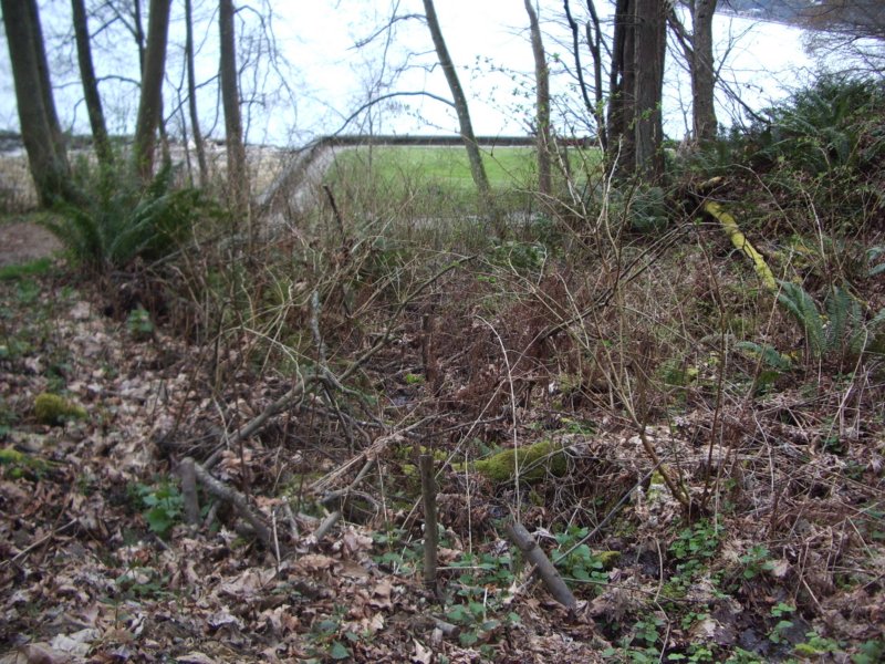Skunk cabbage growing in an area within a few feet of the beach. This photo is looking north. You can see another part of the trail in the background.