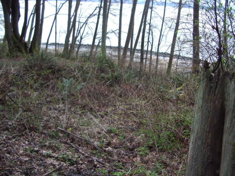 Skunk cabbage growing in an area within a few feet of the beach. This photo is looking west, zoomed in from the last one.