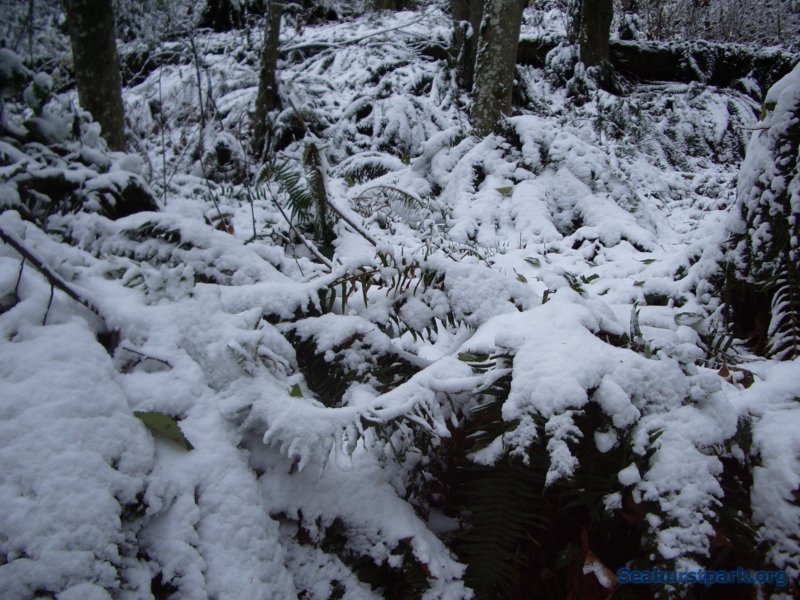 December 14, 2008. Snow on the bushes along the Nature Trail. The trail was more icy than snow covered.