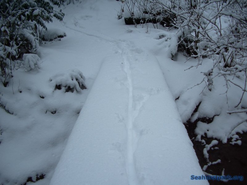 December 18, 2008. Once past the cutoff to Hurstwood the only tracks were from someone on a bicycle. They don't look like bicycle tracks because the pedals were dragging in the snow. And occasionally he had to put a foot down.