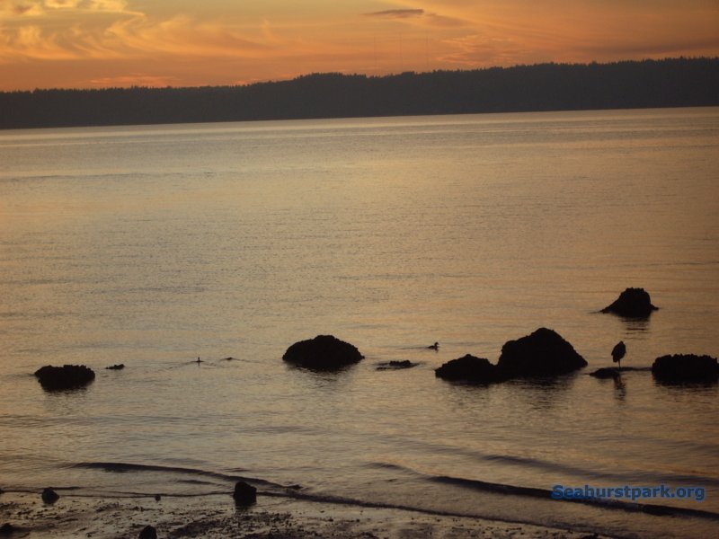 4:18 PM December 5, 2008. Midway up the north side of the park about sunset. The heron has moved out onto a different rock.